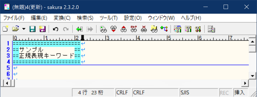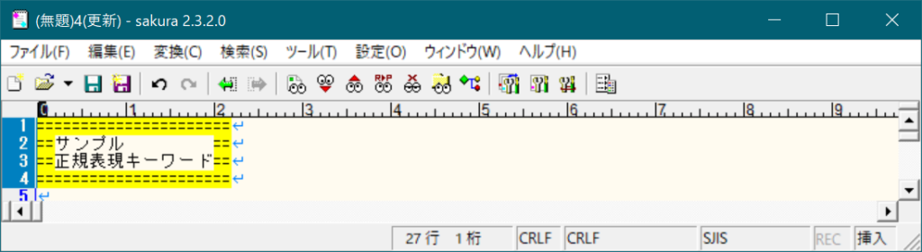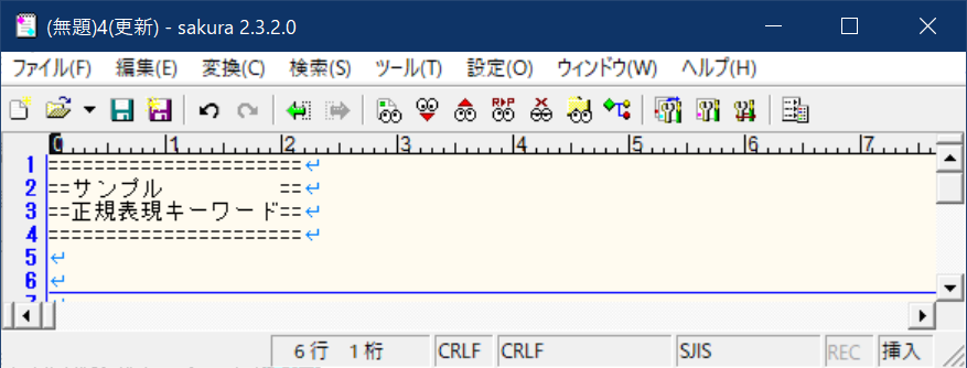 ①サクラエディタ上で、Ctrl+Fキーを押下。