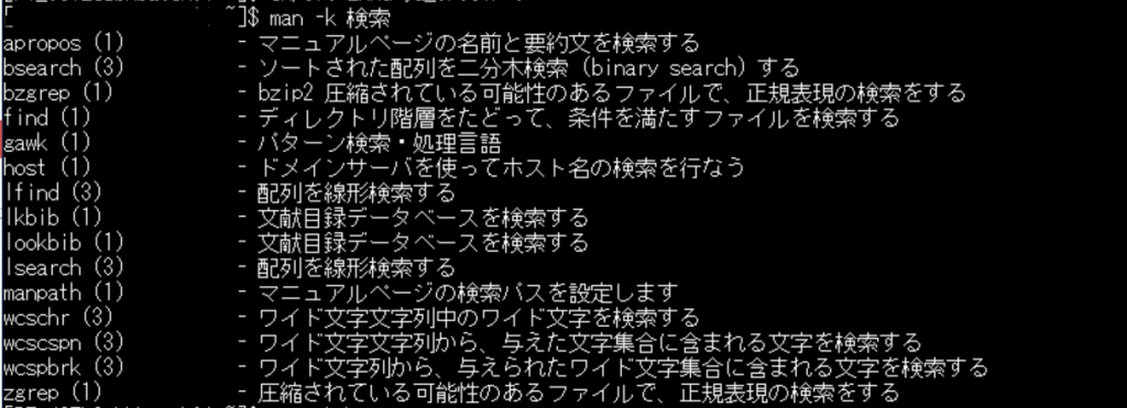Linuxコマンド以外にも、システム関数、マクロなどを検索できます。