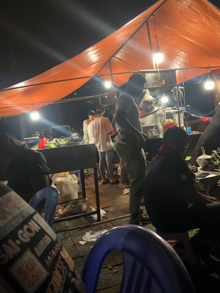 カンボジアあるあるですが、買い犬や猫が放し飼いされています。番犬なので、不審者が通ると吠える(笑) 夜は出入り自由ですが確か遅い時間はベルを鳴らさないといけなかったです。近くにコンビニっぽいところや、少し歩くと屋台があります。